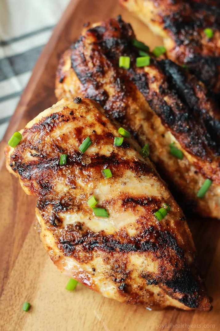 2. Marinade the chicken in the rest of the sauce for at least 30 minutes before grilling. Once the chicken is ready to grill, preheat your grill to medium heat.