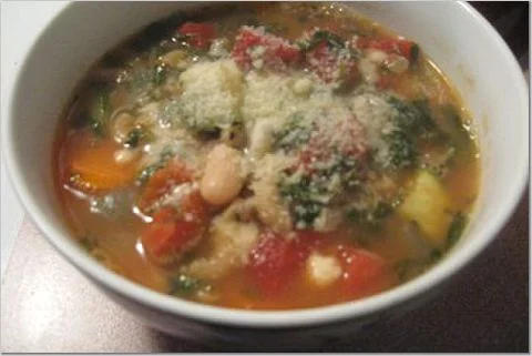 I am not a bean fan but I know I need the protein. I love this soup because you can mash half or all of the beans so it becomes part of the broth. I also put Nutritional Yeast instead of Parmesan for me.